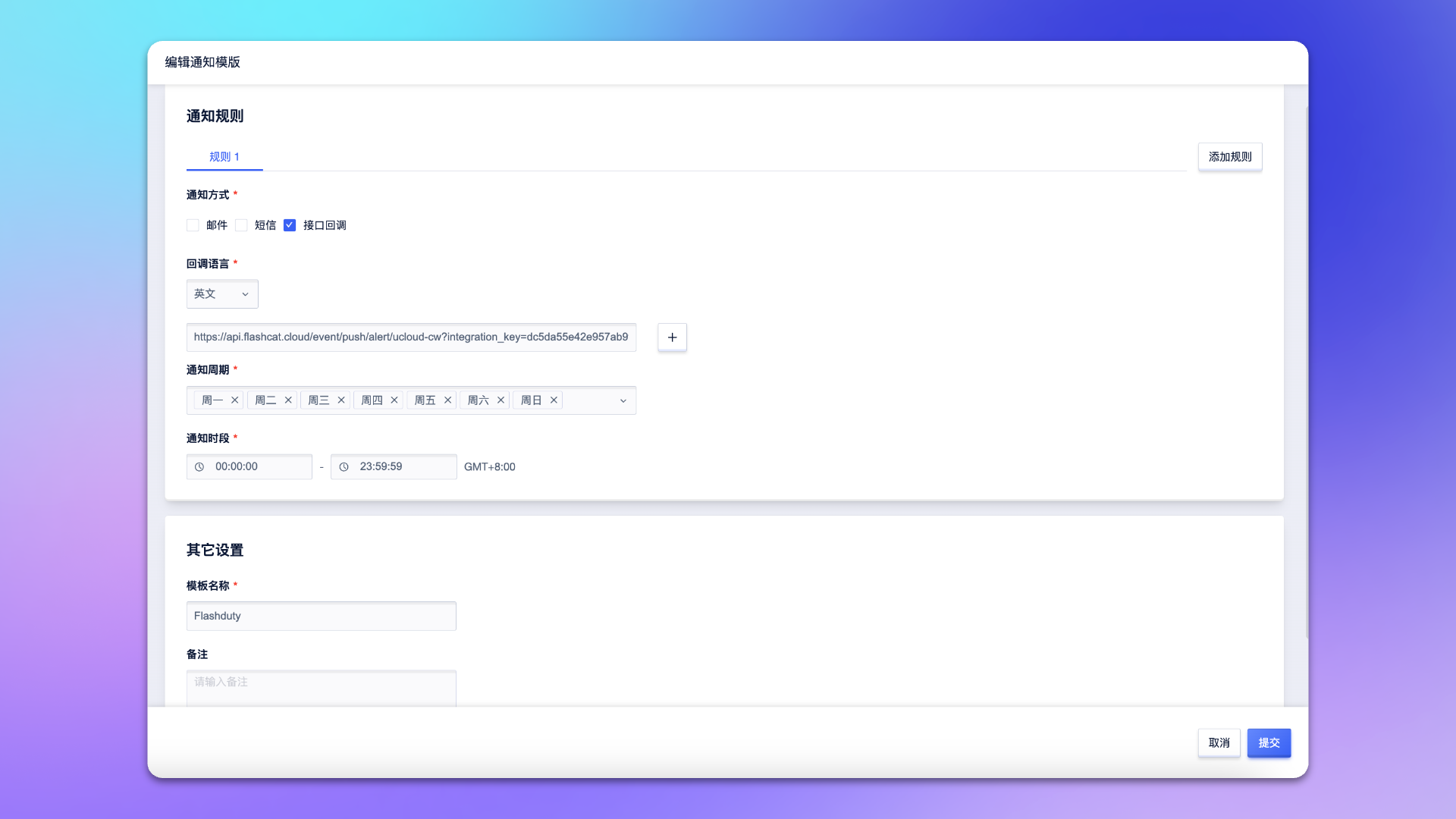 Flashduty或其他。 - 其他选项按需配置。